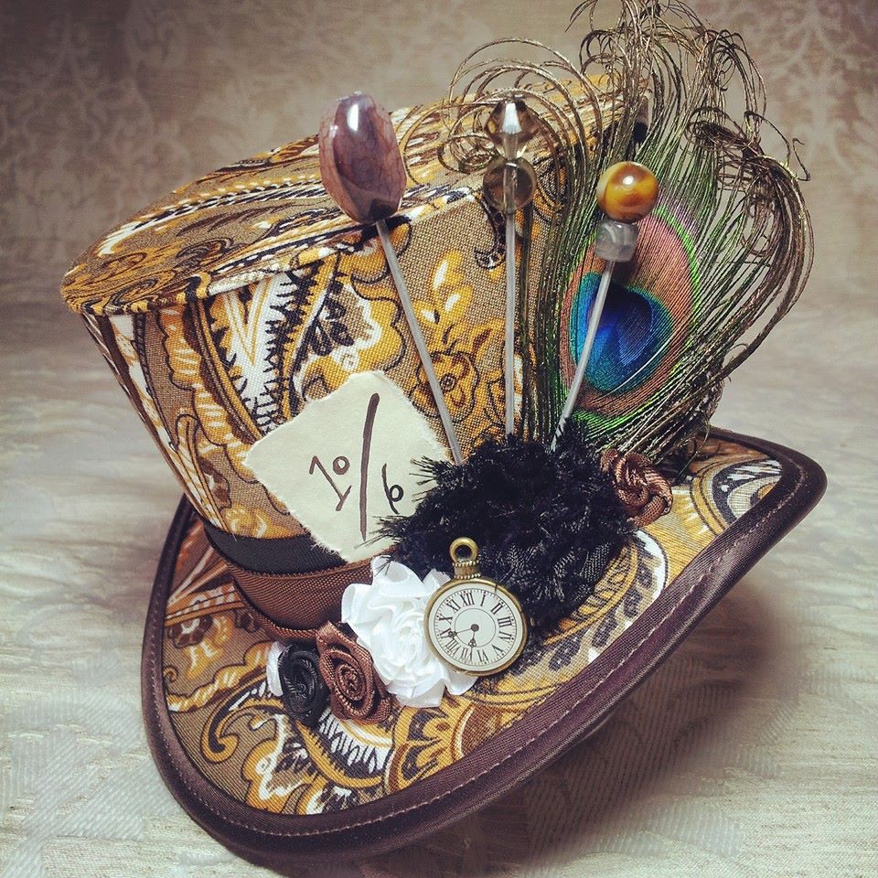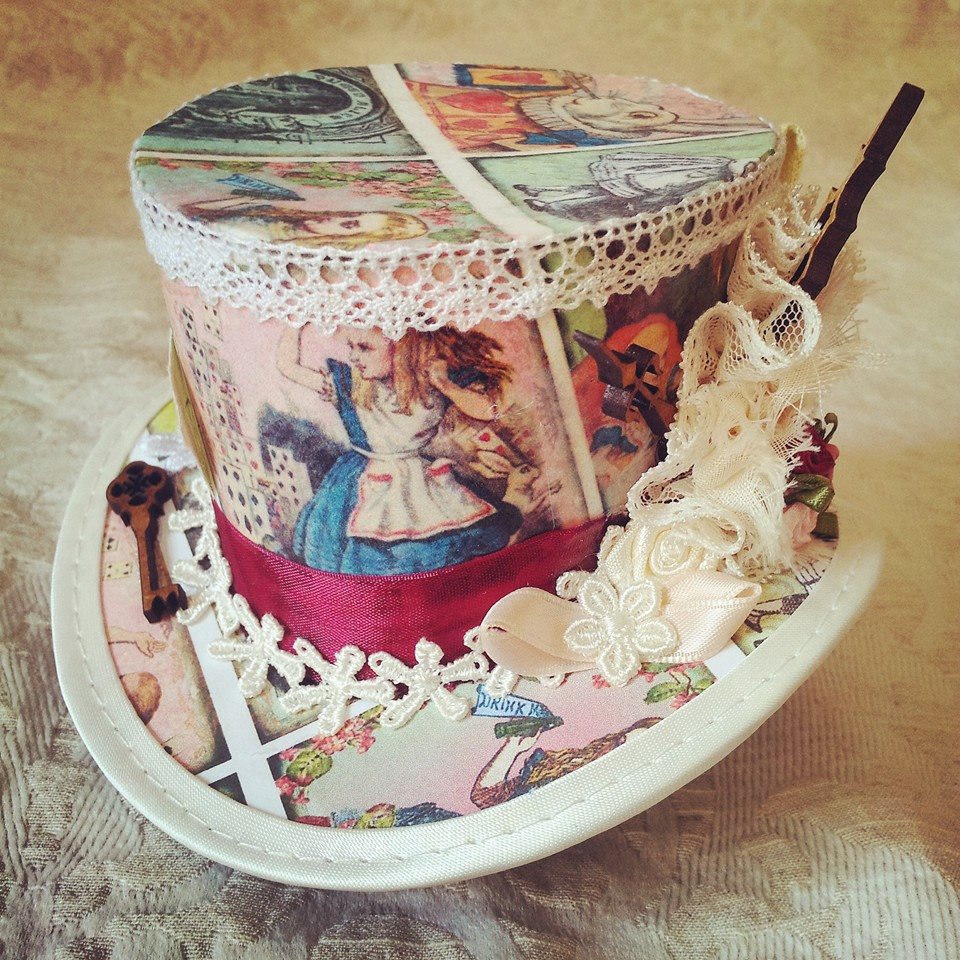 Pentru că tot este week-end şi e posibil să mergeţi la petreceri sau întâlniri cu prietenii, m-am gândit să vă propun nişte accesorii care sigur vă vor scoate din anonimat: pălării trăsnite inspirate de – cine altcineva? – Mad Hatter, personajul din Alice in Wonderland. Sunt asemănătoare ca formă cu jobenul, dar împodobite cu pene şi panglici colorate, cu mărgele, catifea şi alte elemente ce par desprinse direct din cartea lui Lewis Carroll.