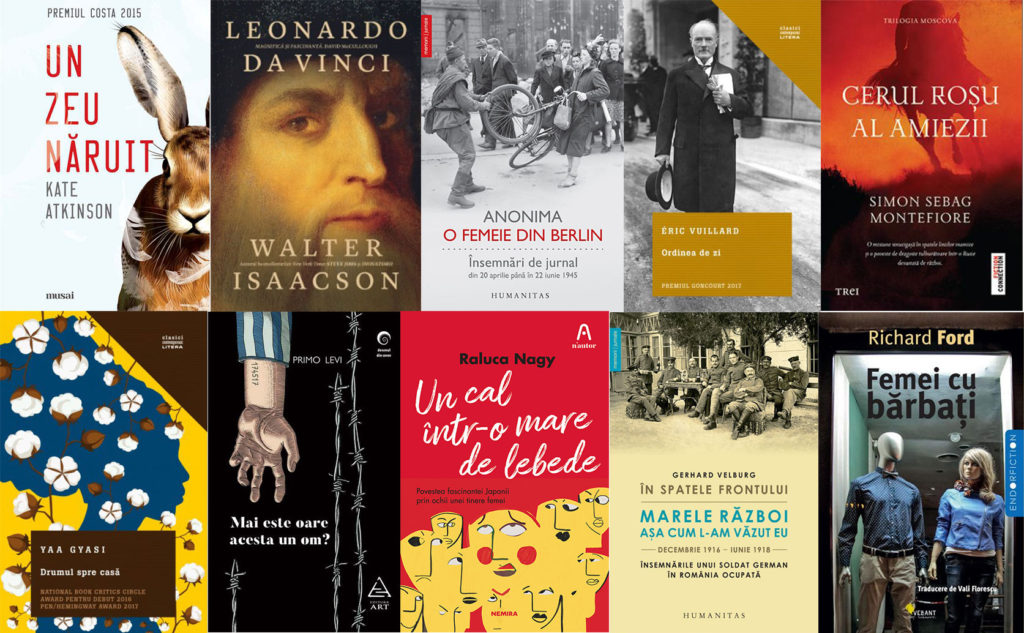 Luna asta avem, ca de obicei, parte de diversitate: de la continuări mult-așteptate (Un zeu năruit, de Kate Atkinson, și ultimul volum al Trilogiei Moscova, de prolificul Simon Sebag Montefiore), la apariții de excepție apărute în traducere română la foarte scurt timp după ediția originală (biografia lui Leonardo da Vinci, de Walter Isaacson, un volum de colecție, și romanul laureat anul trecut cu Premiul Goncourt, Ordinea de zi, de Éric Vuillard), cărți istorice din timpul Primului și celui de-Al Doilea Război Mondial (însemnările unui soldat german în România ocupată, În spatele frontului. Marele Război așa cum l-am văzut eu, decembrie 1916–iunie 1918, de Gerhard Velburg, și jurnalul unei femei anonime despre Berlinul ocupat de sovietici, O femeie din Berlin. Însemnări de jurnal din 20 aprilie până în 22 iunie 1945, dar și o reeditare necesară: Mai este oare acesta un om?, de Primo Levi, una dintre cele mai cutremurătoare mărturii ale experienței lagărelor naziste), un nou debut în literatura română (Un cal într-o mare de lebede, de Raluca Nagy) și două recuperări (Drumul spre casă, de Yaa Gyasi, un roman despre experiența sclaviei în lumea modernă, și Femei cu bărbați, un nou volum de proză scurtă semnat de Richard Ford, un autor care n-a reușit să convingă publicul cititor român prin romanele sale, poate va reuși s-o facă prin povestiri).