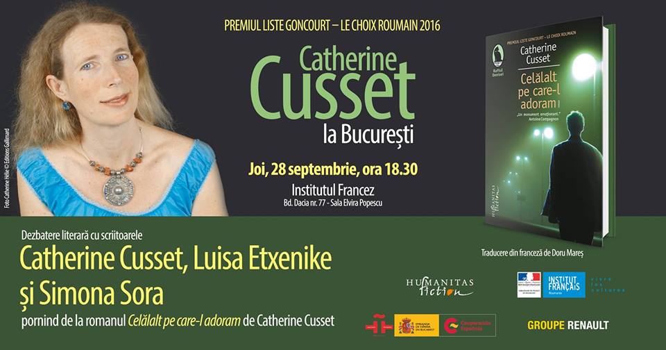 Editura Humanitas Fiction și Institutul Francez vă așteaptă joi, 28 septembrie, ora 18:30, la o dezbatere literară cu scriitoarele Catherine Cusset, Luisa Etxenike și Simona Sora, pornind de la romanul „Celălalt pe care-l adoram”, de Catherine Cusset, distins cu Prix Goncourt – Le Choix roumain 2016. Întâlnirea va avea loc în Sala Elvira Popescu a Institutului Francez din București.